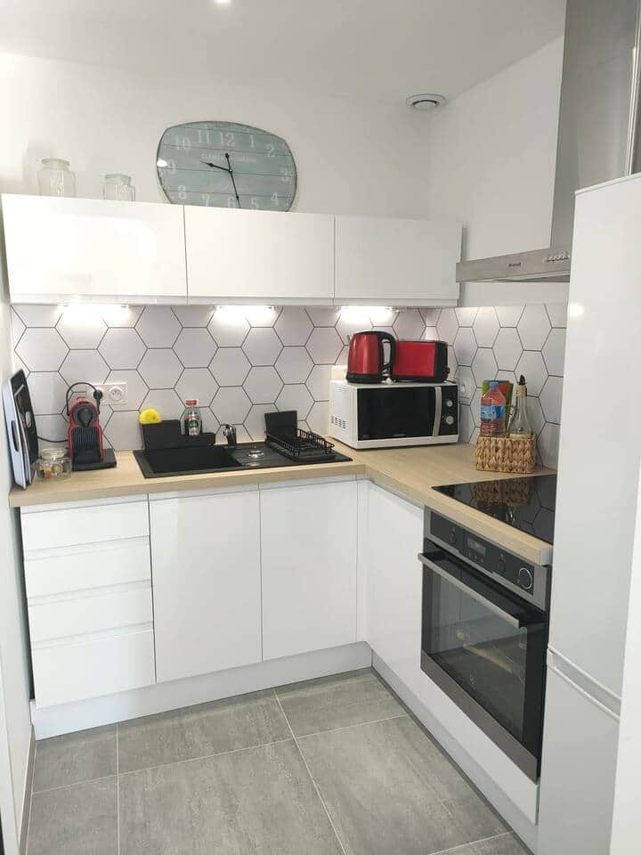 Es verfügt über ein Wohnzimmer, eine separate, voll ausgestattete Küche, ein Schlafzimmer, ein Badezimmer und ein separates WC. Der helle, moderne Wohnbereich verfügt über einen ausziehbaren Tisch, vier bequeme Stühle und eine Schlafcouch. Das Schlafzimmer ist mit einem Queensize-Bett (160 x 200 cm) mit hochwertiger Bettwäsche ausgestattet. Das Badezimmer ist mit einer großen Walk-In-Dusche (120 x 80 cm) und einer Waschmaschine ausgestattet. Auf der 20 m² großen Terrasse, die mit einem Tisch und Outdoor-Möbeln ausgestattet ist, können Sie entspannen. Im Mietpreis ist eine wöchentliche Reinigung enthalten, die Betten sind gemacht und Handtücher für die angegebene Personenzahl sind vorhanden. Kaffee (Nespresso-Maschine), Tee und Zucker für das Frühstück sowie Gewürze zum Kochen sind vorhanden. WLAN (Fibre) ist in der Unterkunft verfügbar und das Passwort ist auf der Box vermerkt.